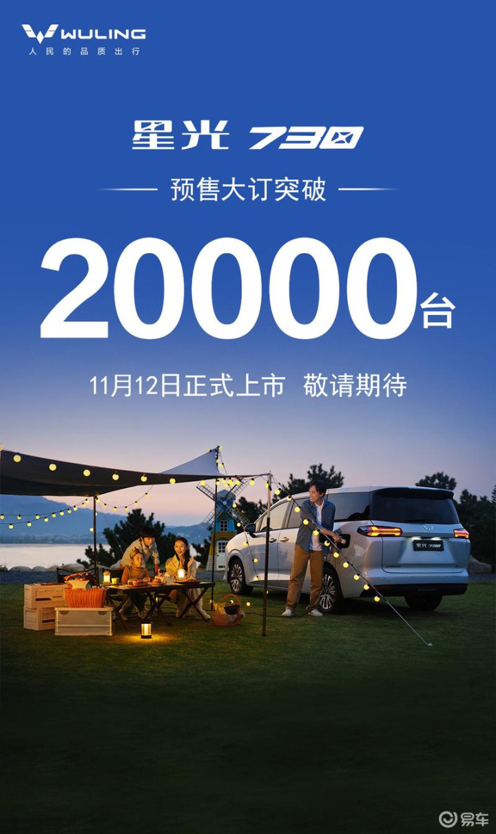 易车讯我们从五菱汽车官方获悉,五菱星光730预售大订突破2万台。五菱星光730于10月15日开启预售,预售价区间7.68-11.28万元,限时置换补贴价区间7.38-10.78万元,将于11月12日正式上市。