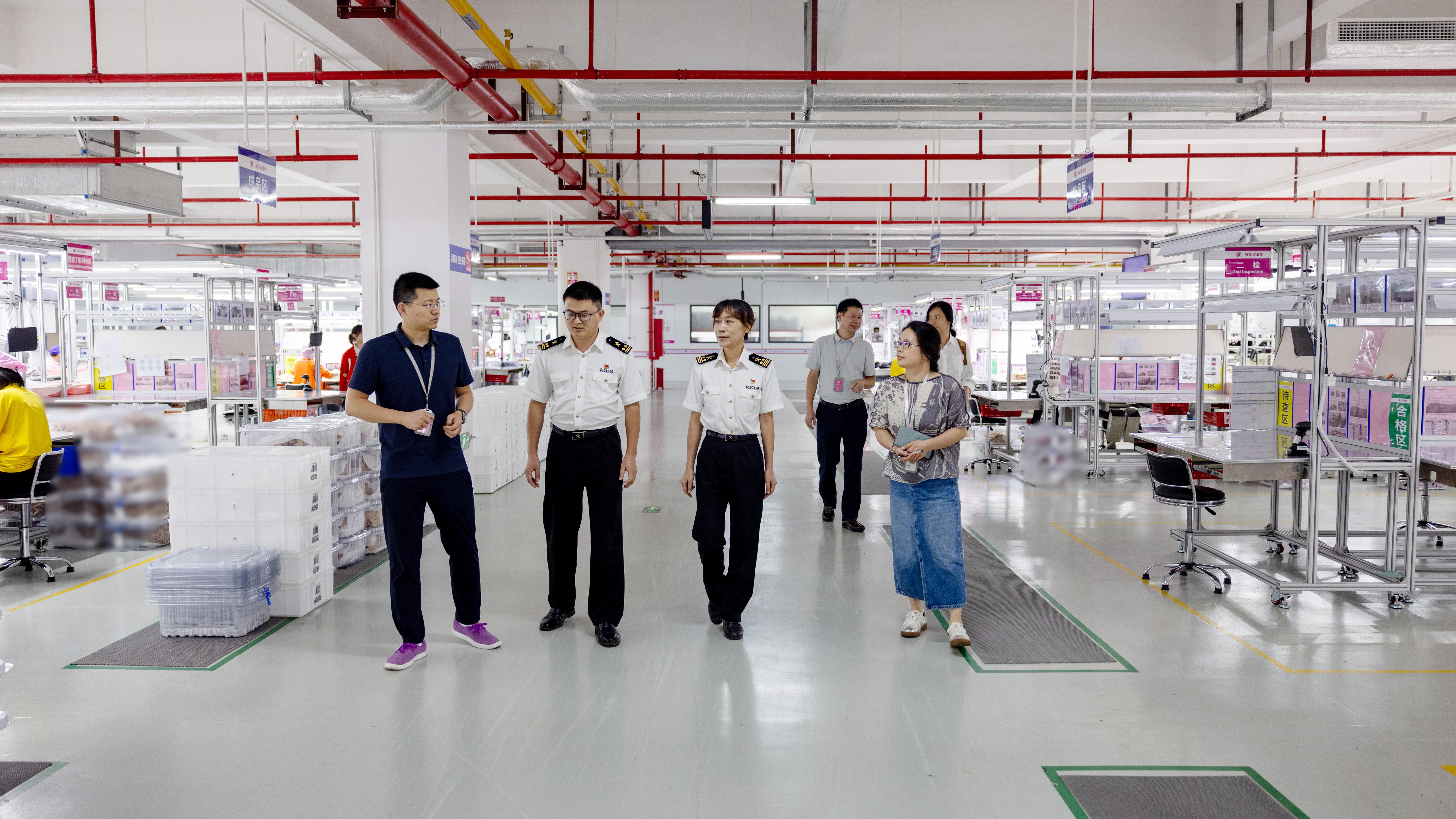 肇庆海关关员在维珍妮智创科技(肇庆)有限公司了解生产管理情况。黄结敏 摄