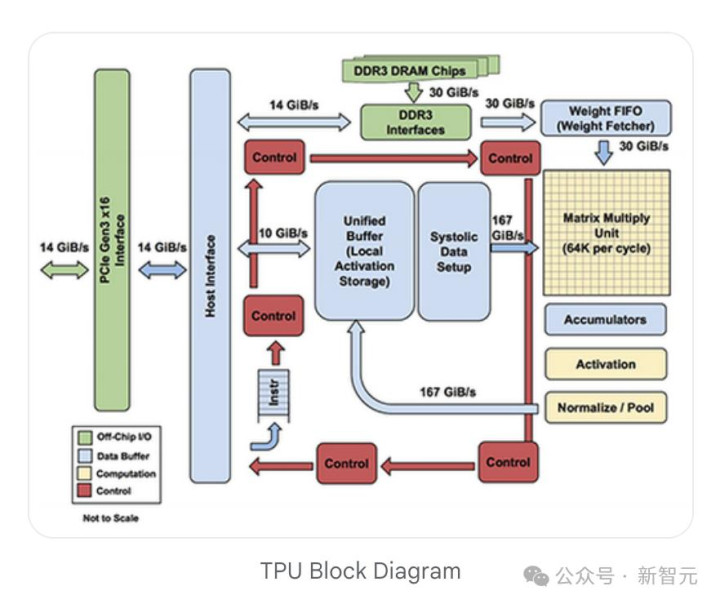 与CPU(通用处理器)和GPU(当时主要为图形渲染优化)不同,TPU彻底摒弃了非必需的硬件,如缓存、乱序执行和纹理映射单元。
