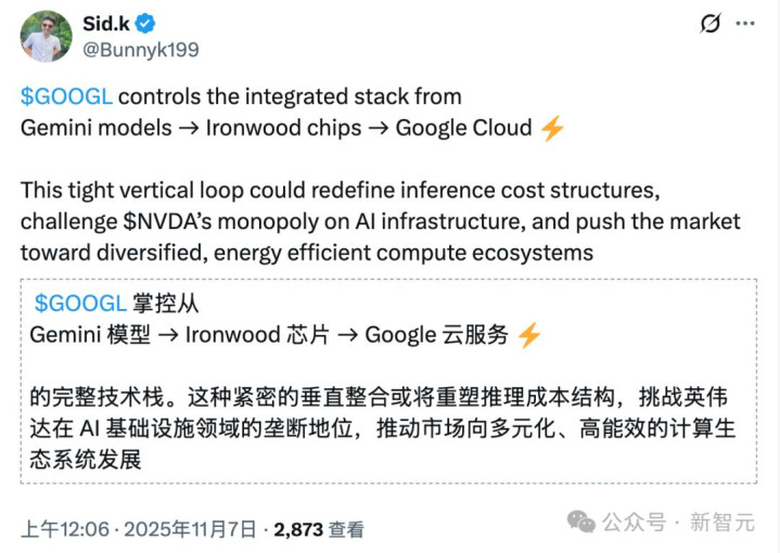 当所有AI公司都在抢购H系列GPU时,谷歌早已在自己的TPU集群上完成了自我造血循环 ——训练、部署、推理、优化,全都在自己的系统内部完成。