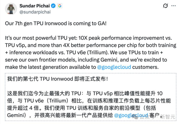 这几天,谷歌终于把憋了很久的大招放出来了,CEO劈柴官宣了自研第七代TPU Ironwood正式商用。